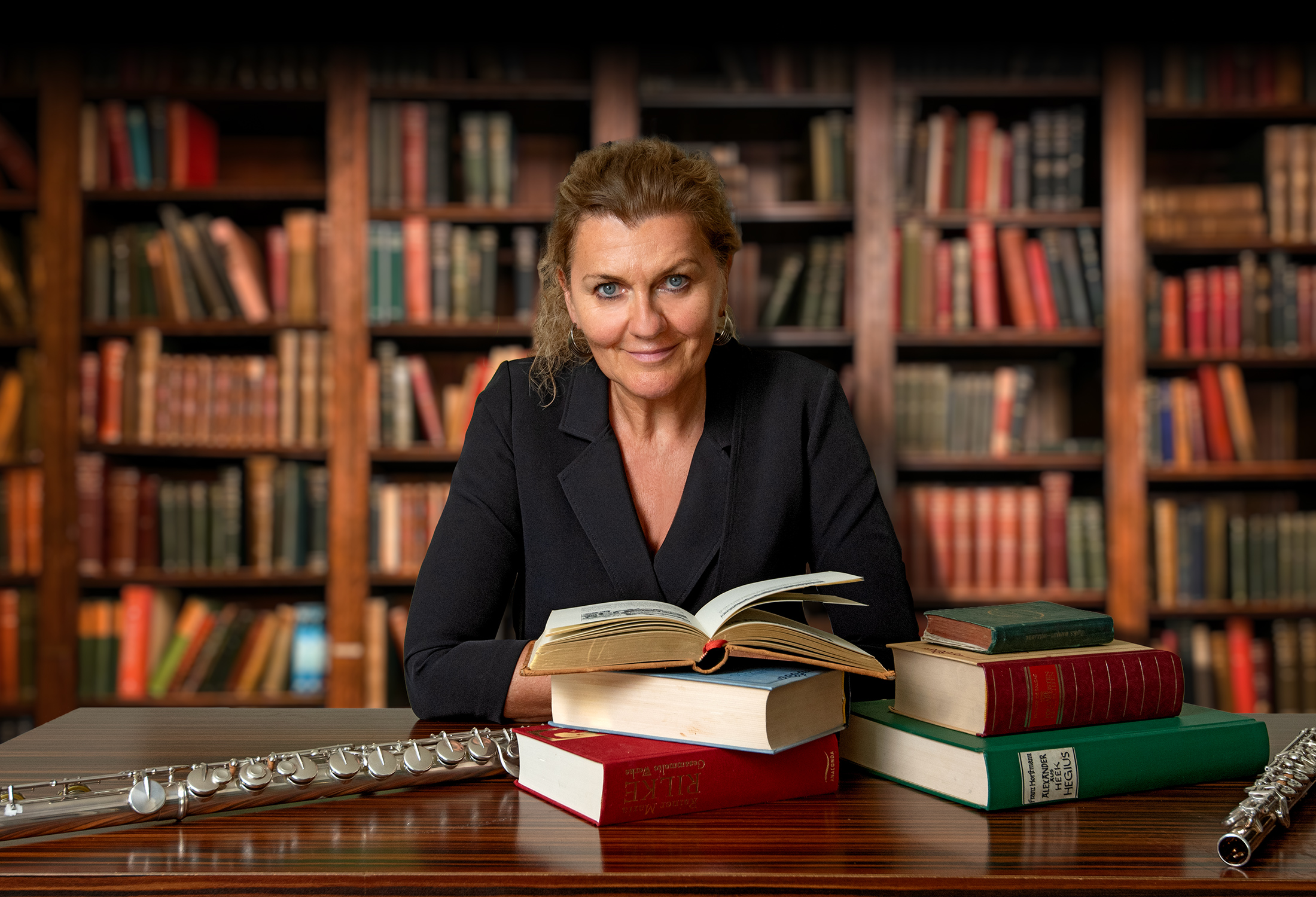 In ihrer Darbietung kombinierte die studierte Musikerin ihre Erzählungen mit musikalischen Einlagen und machte die Lesung so zu einer außergewöhnlichen Veranstaltung. Dabei verstand sie es, die rund 80 Gäste im Spiegelsaal von Erheiterung über Erstaunen bis hin zu besinnlichen Eindrücken zu führen. Denn passend zu den Texten von Schriftsteller Alphonse Daudet und des Philosophen Michel de Montaigne hatte die charismatische Flötistin aus ihrer vielfältigen Auswahl an Instrumenten immer die gebührende Flöte zur Hand. Mit der Holzquerflöte über die Altquerflöte bis hin zur „Dizi", einer chinesischen Bambusquerflöte, schuf sie eine Symbiose aus Literatur und Musik, die beim Publikum Gefallen fand.